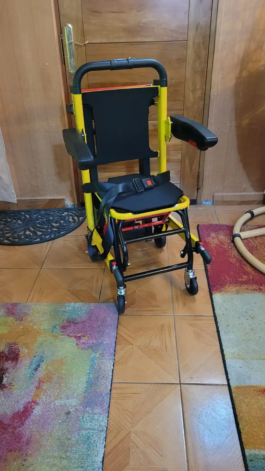 La oruga se adhiere muy bien a la superficie sin resbalar, a pesar de tener un alto grado de inclinación de la escalera.